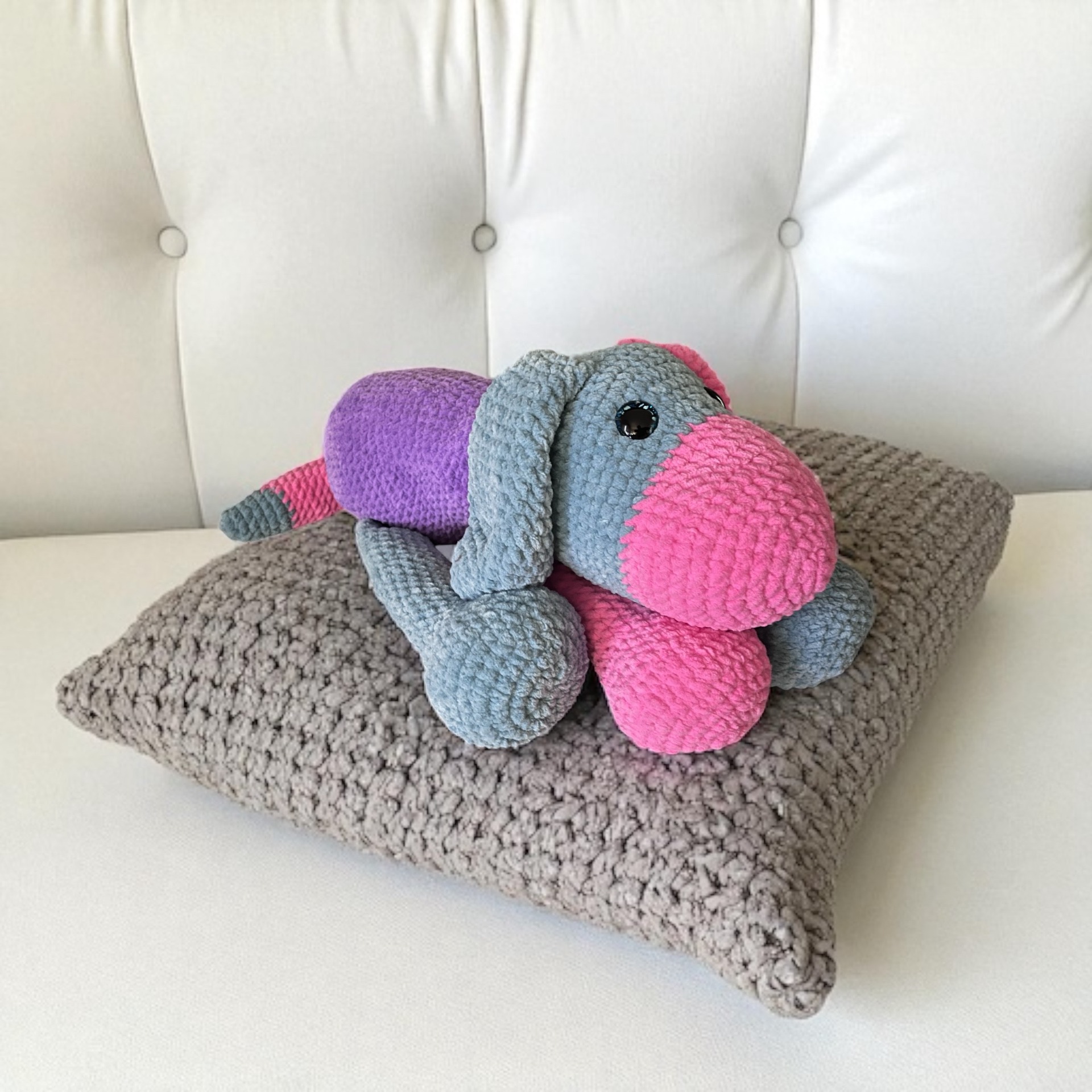 Adoptez ce chien en crochet tout doux, entièrement fait main avec un fil chenille certifié Oeko-Tex. Avec ses grandes pattes moelleuses, son museau tout rond et ses couleurs pétillantes, il deviendra vite le compagnon préféré des petits comme des grands. Que ce soit pour une déco pleine de tendresse ou un cadeau personnalisé, ce toutou est une valeur sûre ! Caractéristiques : – Fait main avec soin – Fil chenille ultra doux (certifié Oeko-Tex) – Yeux de sécurité (possibilité de broderie sur demande) – Dimensions : 50cm – Livraison rapide